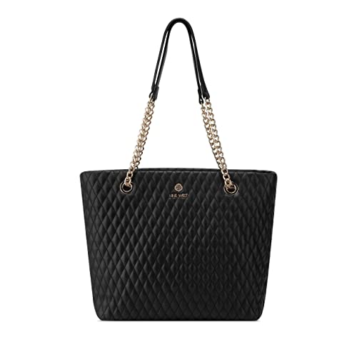 • Nine West designer caelia tote with hardware branding and internal pockets for organization as well as detailed chain shopper handles