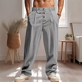 More information about Men's Linen Pants Trousers Summer Pants Beach Pants Pocket Buttons Plain Comfort Breathable Vacation Daily Holiday Hawaiian Boho Black White