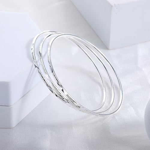 • You will Get: 3 closed solid silver bangles bracelets for women with an inner diameter of 2.36inch, which are light and exquisite. It is a fashionable gift for moms, mothers, and wives.