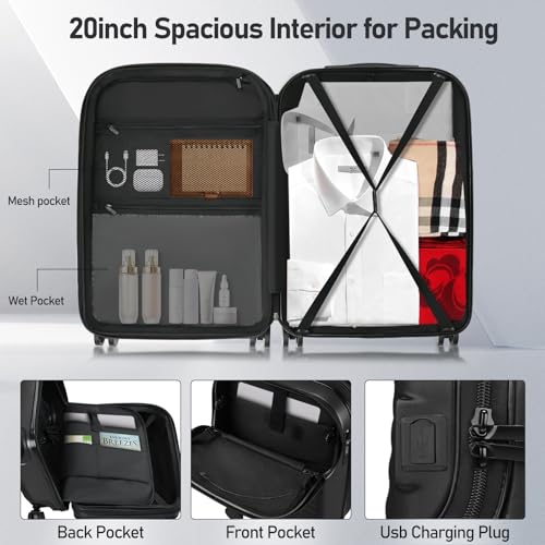 • 【360°Double Spinner Wheels】Equipped with 8 high-quality, shock-absorbing wheels, this design ensures quiet and smooth travel. allowing you to pull the carry-on luggage with spinner wheels effortlessly.