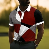 Men's Geometric Polo Short Sleeve Polo Shirts Collared Shirts Casual School Outdoor Daily Wear 3D Print Summer Red Blue Purple 7