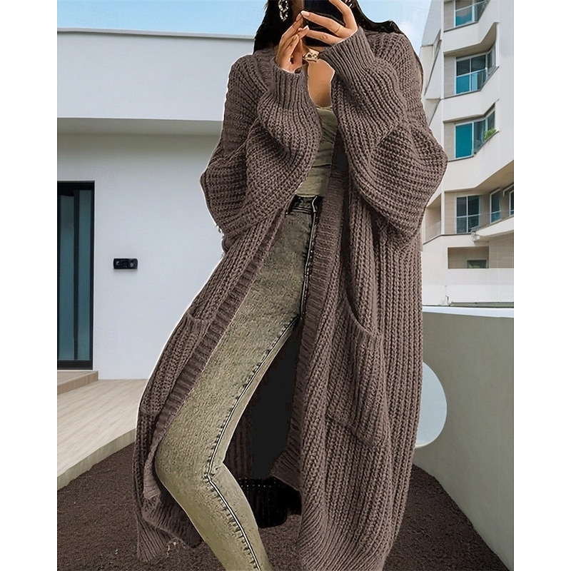 HOT ! Women's Sweater Cardigan Fashion Streetwear Casual Pure Color Ribbed Open Front Pocket Knitted Long Sleeve Long Tops Knit Outdoor Daily Weekend Wine Red Black Fall Winter