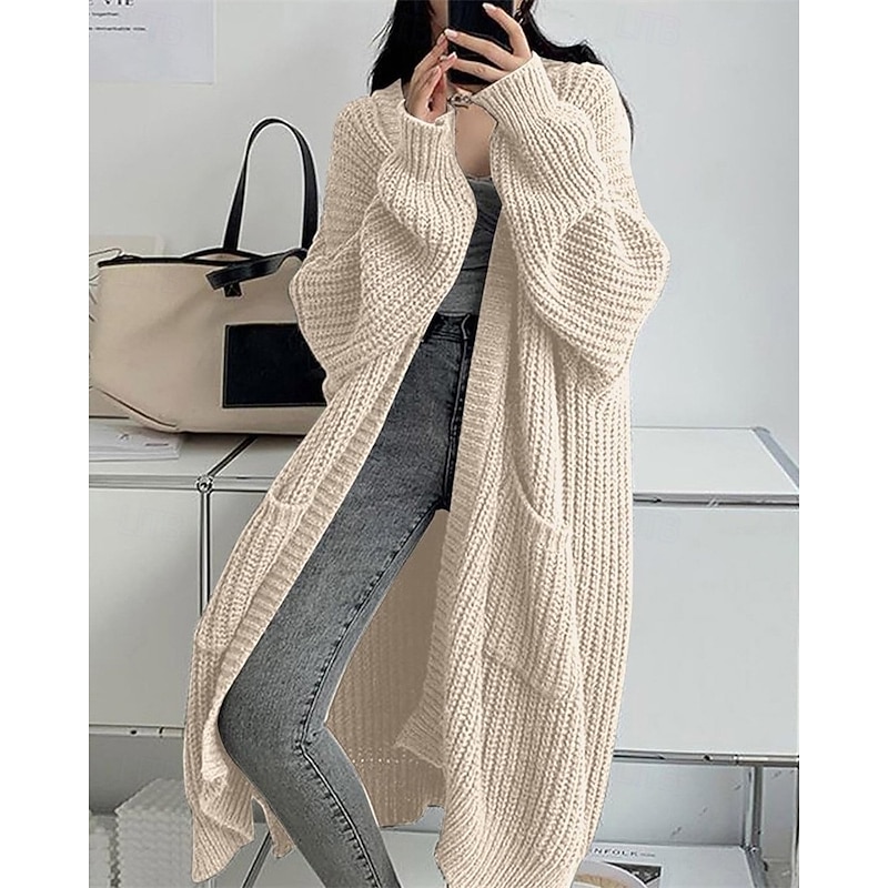 More information about Women's Sweater Cardigan Fashion Streetwear Casual Pure Color Ribbed Open Front Pocket Knitted Long Sleeve Long Tops Knit Outdoor Daily Weekend Wine Red Black Fall Winter