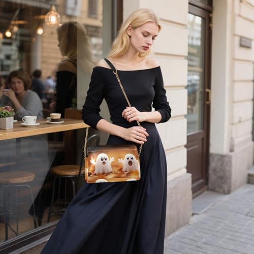 Women Crossbody Bag Shoulder Handbag Cellphone Purse PU Leather Metal Chain Strap Water Resistant Zipper Closure Cute Ghosts Print 1