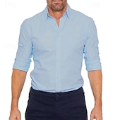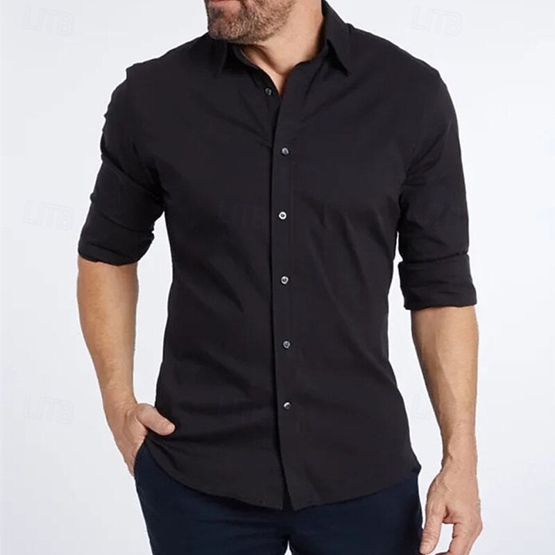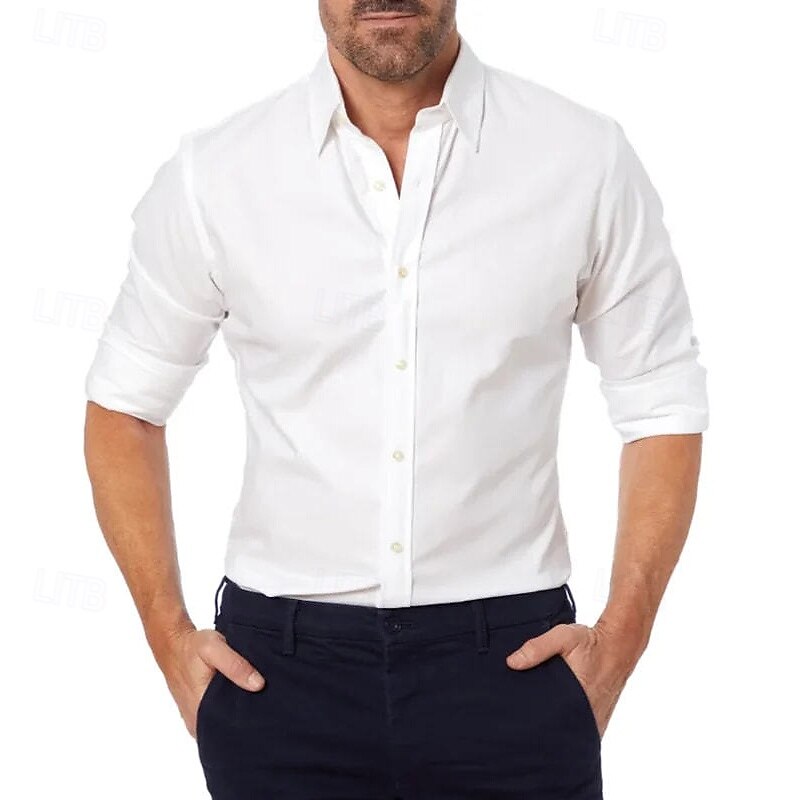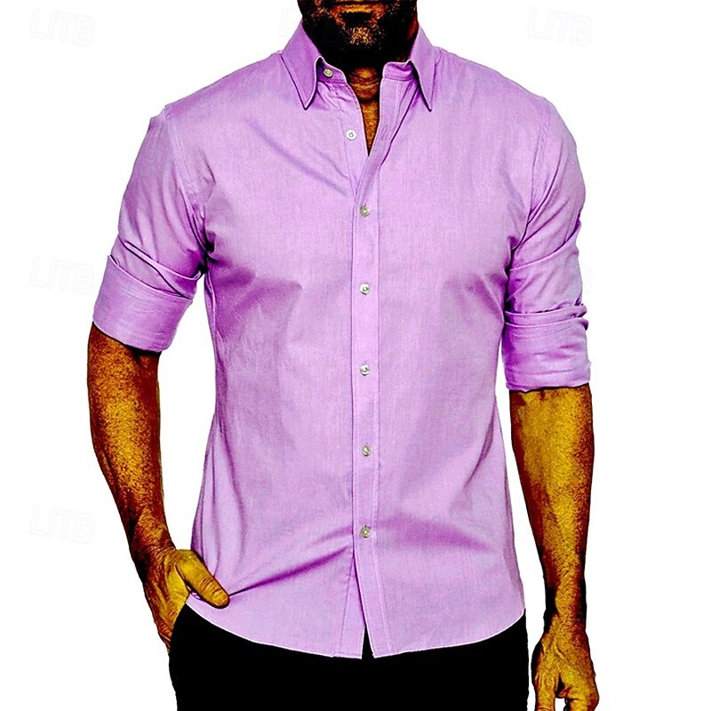 More information about Men's Shirt Dress Shirt Button Up Shirt Plain Wedding Party Black White Pink Navy Blue Long Sleeve Lapel Spring & Fall Clothing Apparel