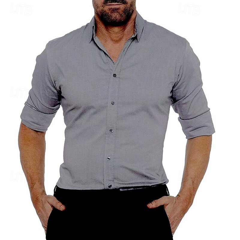 : Each shirt is designed with a classic long-sleeve, button-up style and adorned with a traditional lapel collar. The plain pattern offers an elegant and understated look, available in a variety of colors such as blue, white, black, sky blue, navy blue, gray, pink, and light purple, ensuring you’ll find the perfect match for any outfit.