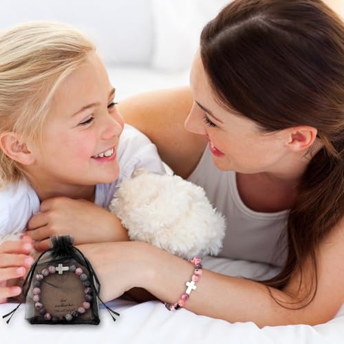 • Agate Material: the bible verse bracelet is made from exquisite agate, boasting a exceptional pink hue that imparts an elegant vibe, it's chic cross design, carefully crafted, fulfills the requirements of trendy catholic style
