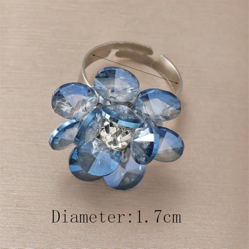3D Crystal Flower Statement Ring for Women Silvery Chunky Cherry Blossom Adjustable Open Wrap Finger Rings Comfort Fit Delicate Wedding Holiday Party Jewelry Gift 5