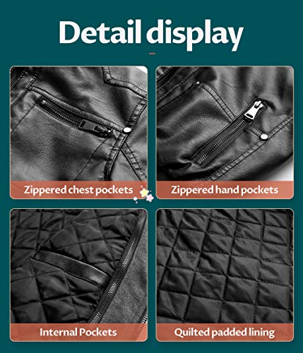 • ▶ Practical multi-pockets--Boy's waterproof spring pleather jacket with 2 zippered hand pockets, 2 zippered chest pockets, 1 internal pocket, great for keeping keys, wallet & small items.