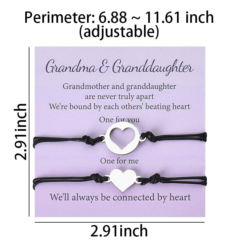 • Adjustable Size and High Quality: The grandma and granddaughter matching bracelets are made of high quality stainless steel and nylon string, which are very sturdy and strong, have no sharp edges on it, pretty comfortable to wear, the adjustable knots allows you to wear according to your wrist, perfectly suitable as birthday gifts for grandma form granddaughter, granddaughter gift