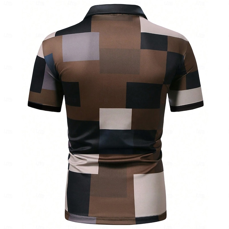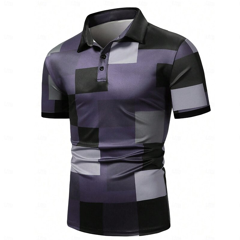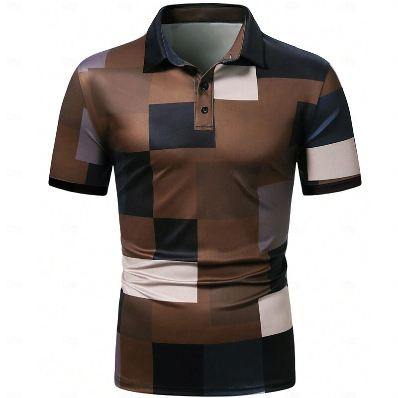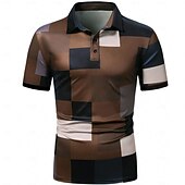 More information about Men's Plaid Golf Shirt Short Sleeve Polo Shirts Collared Shirts Casual Vacation Wear Formal Wear Festival Wear Buttons 3D Print Summer Dark Brown Black Blue