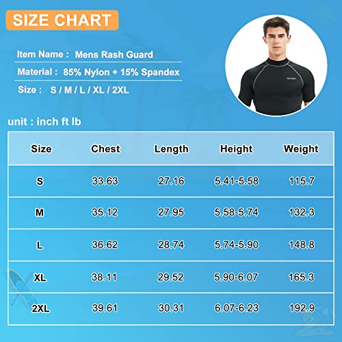 Mens Rash Guard Long Sleeve Swim Shirts for Men UPF 50+ UV Protection Compression Short Sleeve Water Shirts Quick Dry 5