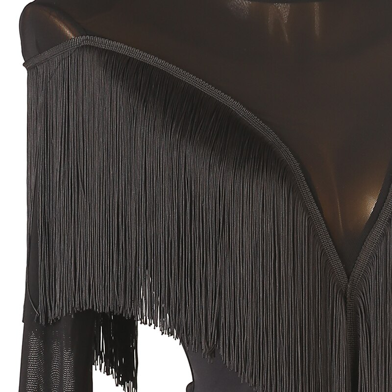 Latin Dance Dress Fringed Tassel Women's Training Performance Long Sleeve Chinlon Mesh 1