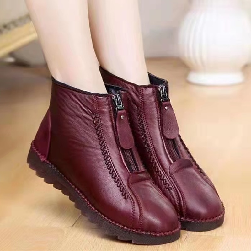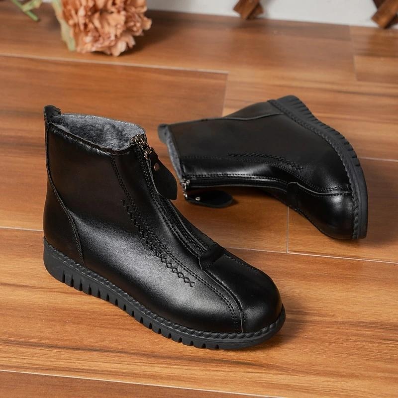 More information about Women's Black Faux Leather Ankle Boots with Plush Fur Lining, Dual Zipper Design, and Non-Slip Sole for Winter Warmth and Comfort