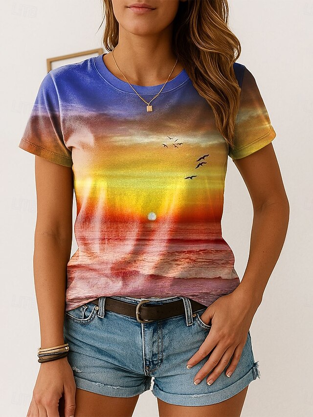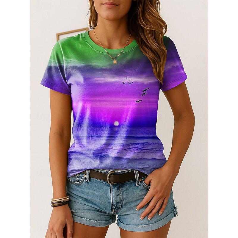 More information about Women's T Shirt Ombre Graphic Vintage Stylish Classic Short Sleeve Crew Neck Regular Tops Daily Weekend Print Pink Blue Purple Orange Summer Spring