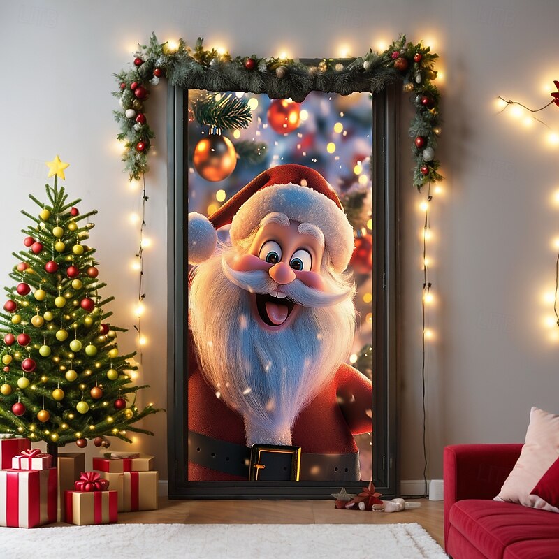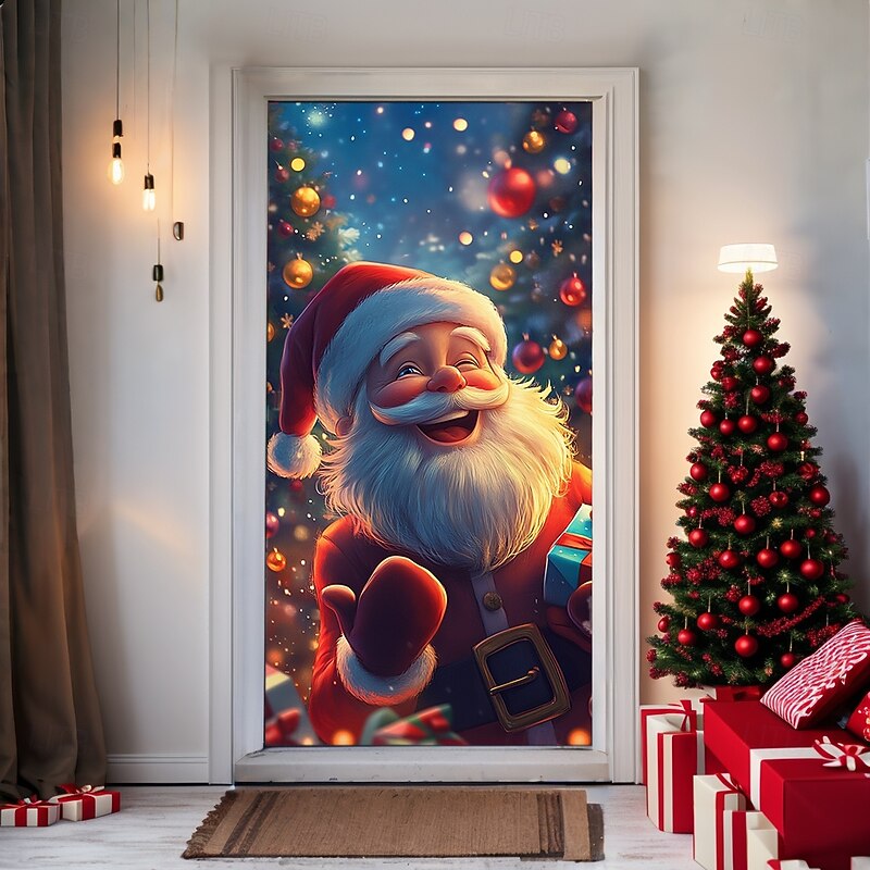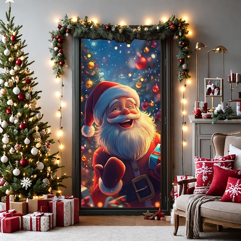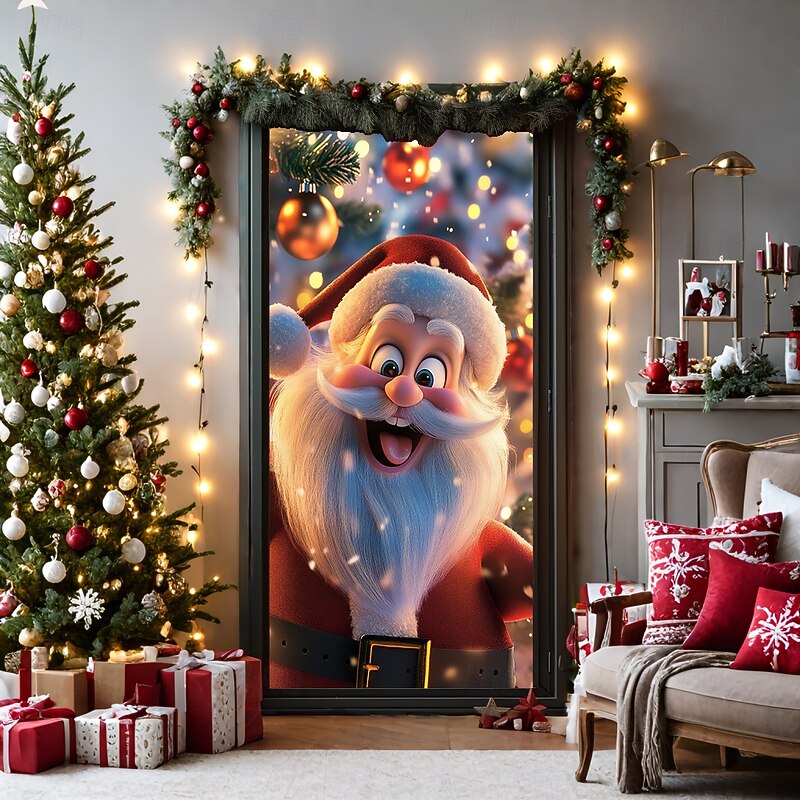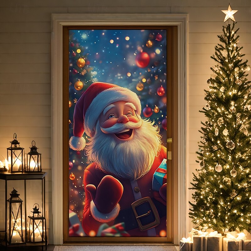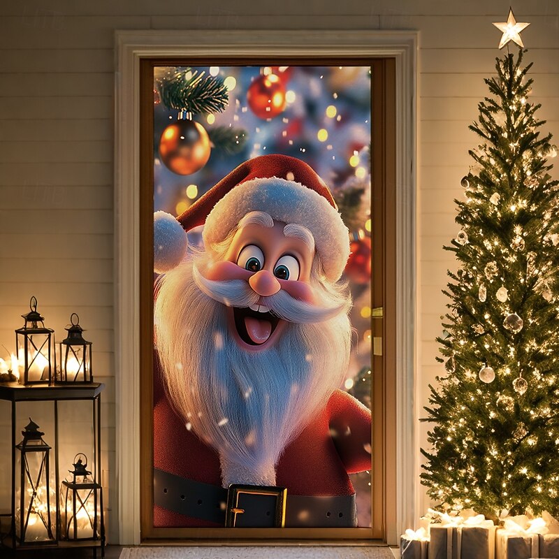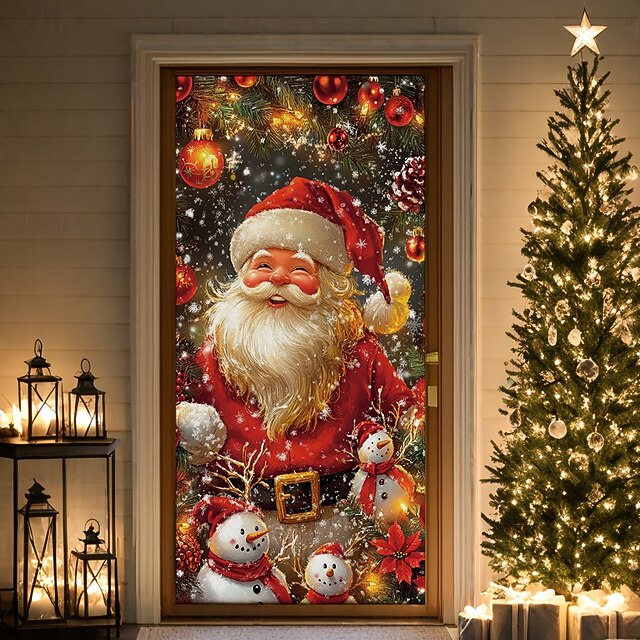 HOT ! Christmas Door Decorations Door Covers Xmas Santa Snowman Ornaments Door Tapestry Door Curtain Decoration Backdrop Indoor/Outdoor Door Banner for Front Door Farmhouse