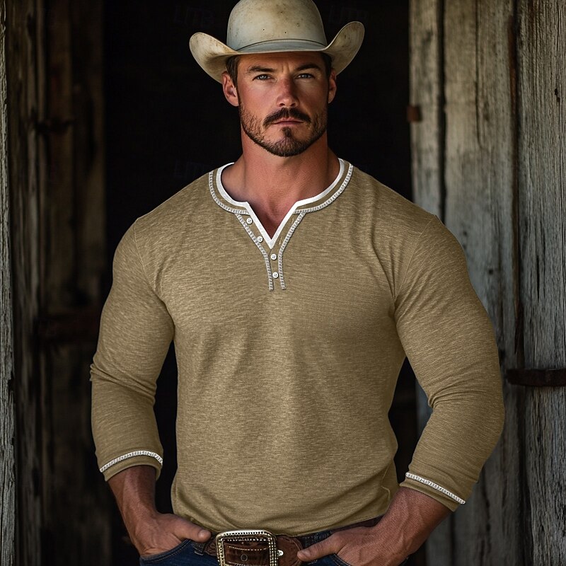 More information about Men's Henley Shirt Tee Top Long Sleeve Patchwork Designer Retro Vintage Basic Button Up Fake two piece Henley Vacation Street Casual Daily Summer Black Blue Green Henley T-Shirt