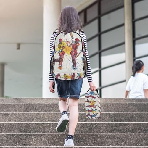 Backpack Cricket Players Colorful Book Bag Daypack Shoulder Bag Lightweight Back Pack with Lunch Box Travel Laptop Daypack 18.5 x 11.8 In 1