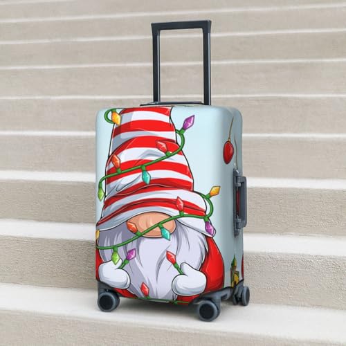 HOT ! Funny Christmas Gnome Print Luggage Cover For Suitcase,Washable Elastic Travel Suitcase Protector With Zipper Closure And Bottom Buckle – Fits 18-32" Luggage-Large