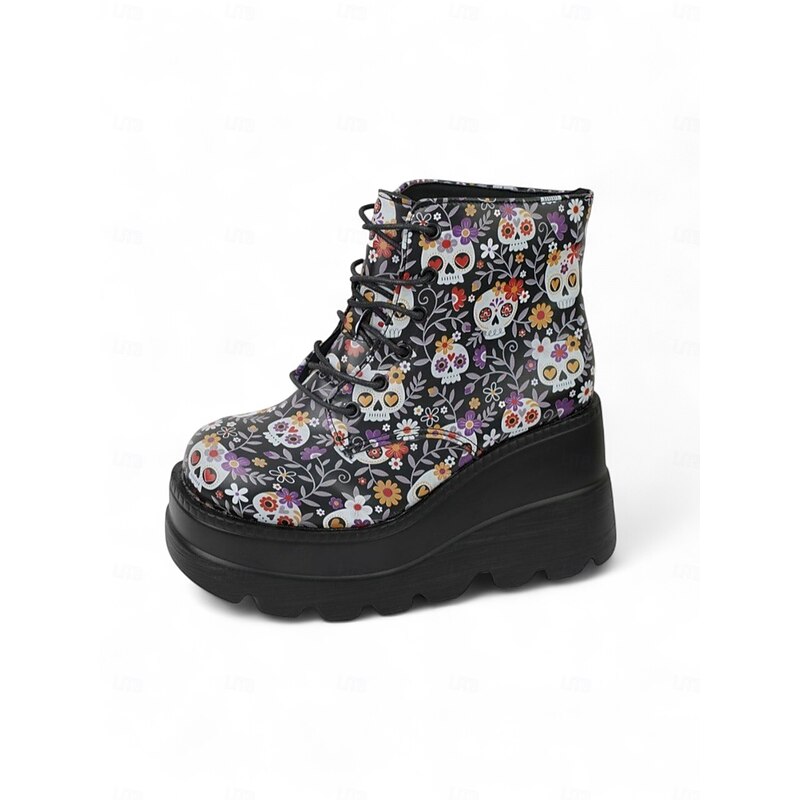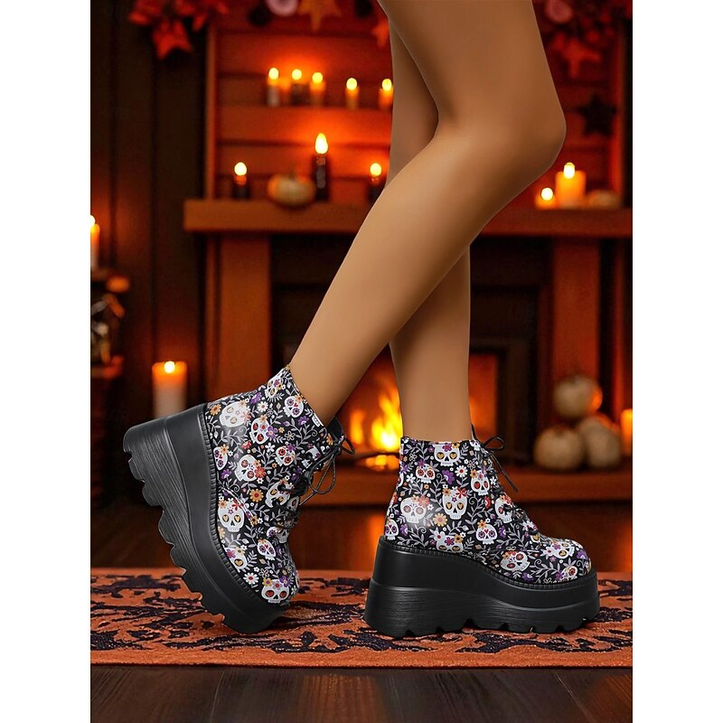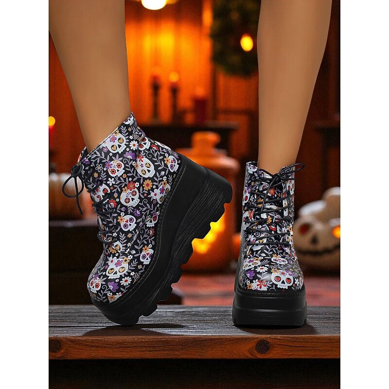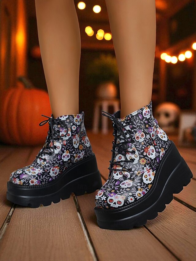 $34.99 - Women's Black Platform Skull Lace-Up Boots - Halloween Chunky Sole Gothic Ankle Boots for Fall Parties, Cosplay and Day of the Dead 2025. Shop for cheap Shoes For Women online? Buy at lightinthebox.com on sale today!