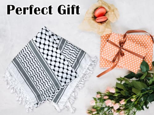 • ✨ Fashionable Design: The shemagh desert scarf measures 49.2inches x 49.2inches, with a soft texture that is easy to wear. It features a tassel design, exquisite fashion, and exotic charm.