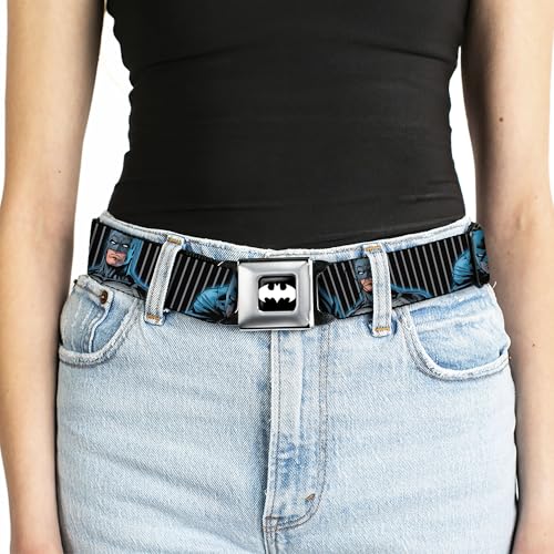 Buckle-Down Belt Seatbelt Buckle Batman Standing Crouching Poses Stripe Black Gray Mens Womens Kids Adjustable 4
