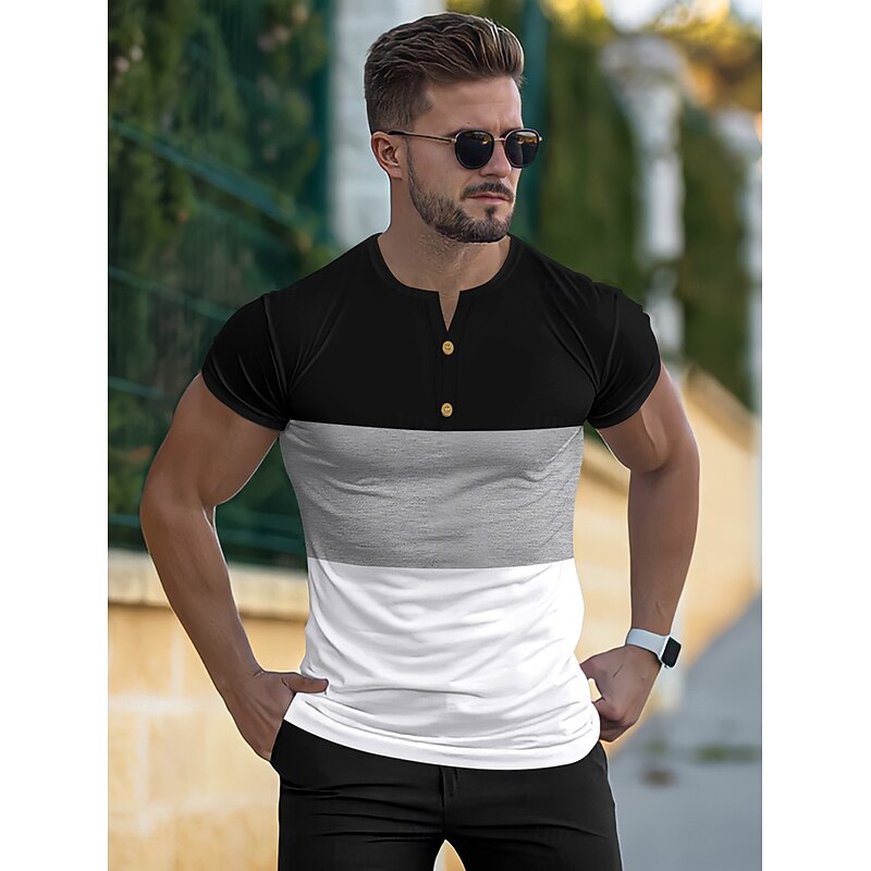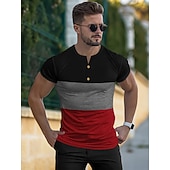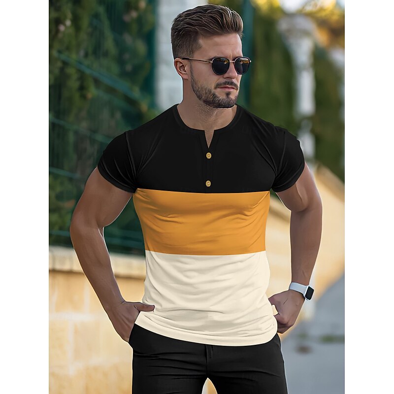 More information about Men's Button T Shirt Henley Shirt Tee Short Sleeve Shirt Short Sleeve Henley Summer Color Block Fashion Designer Color Block Fashion Vacation Street Going out Black White+Black Yellow Top Tee for Men