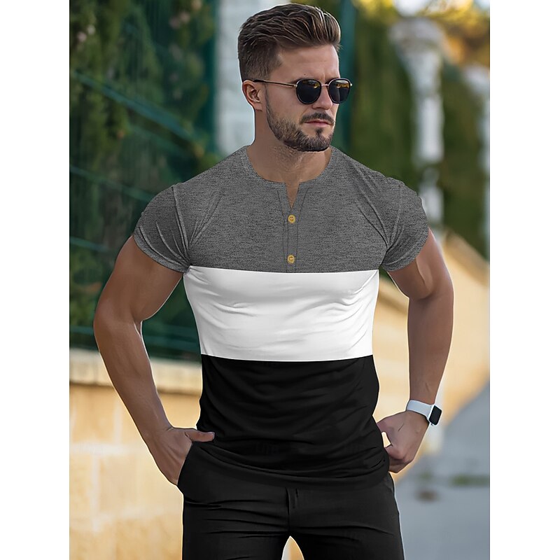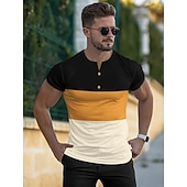 Men's Button T Shirt Henley Shirt Tee Short Sleeve Shirt Short Sleeve Henley Summer Color Block Fashion Designer Color Block Fashion Vacation Street Going out Black White+Black Yellow Top Tee for Men 17