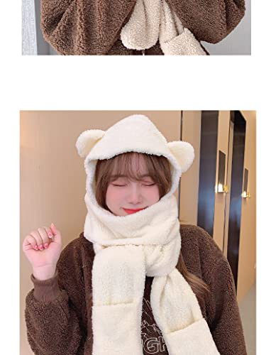 Winter Warm Fuzzy Long Hooded Hat Scarf and Gloves Set Kawaii Bear Ears Earflap Plush Thick Fleece Costume Accessories 5