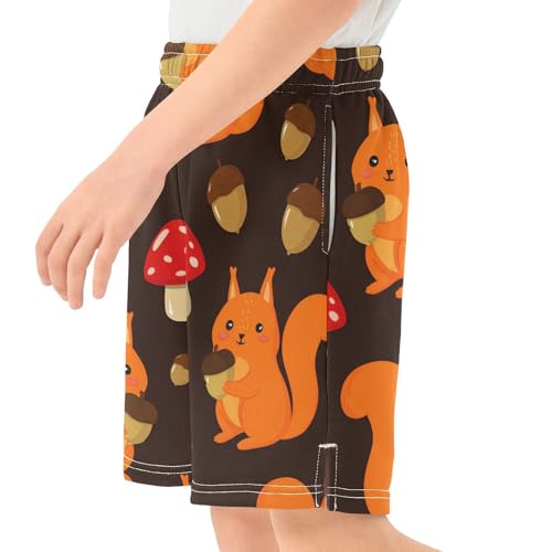 J JOYSAY Acorn Mushroom Squirrel Brown Boys Athletic Shorts Kids Youth Casual Shotrs with Elastic Waistband Pockets 4