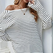 More information about Women's Sweater Streetwear Daily Stylish Striped Boat Neck Knitted Long Sleeve Regular Tops Knit Work White / Black Fall Winter