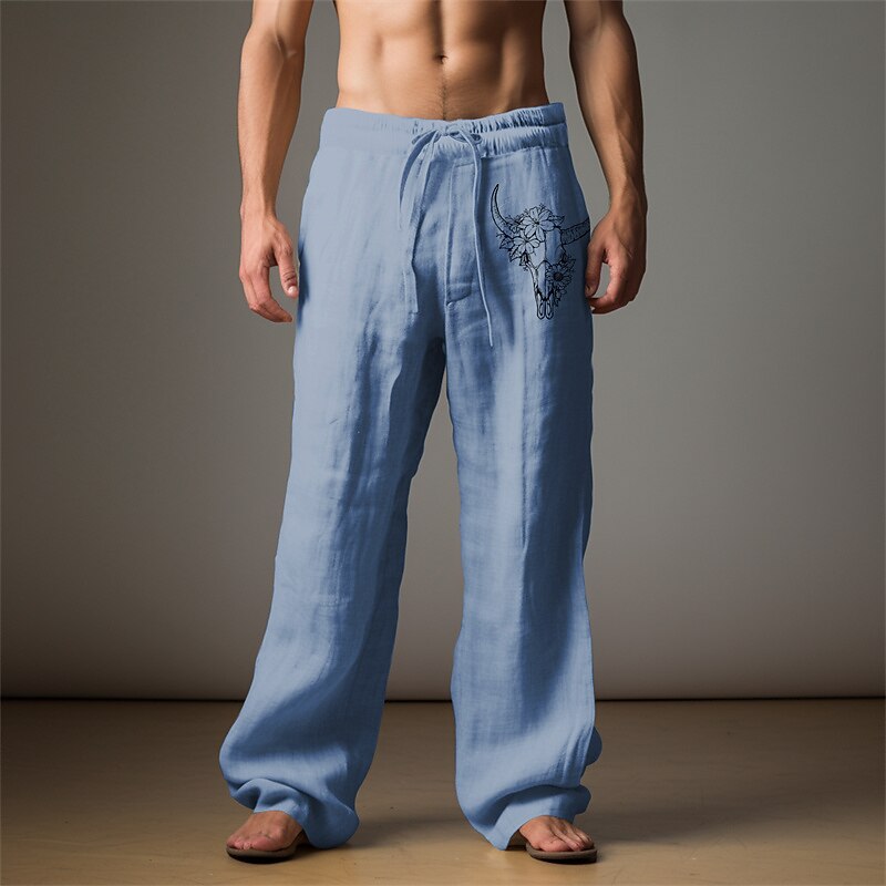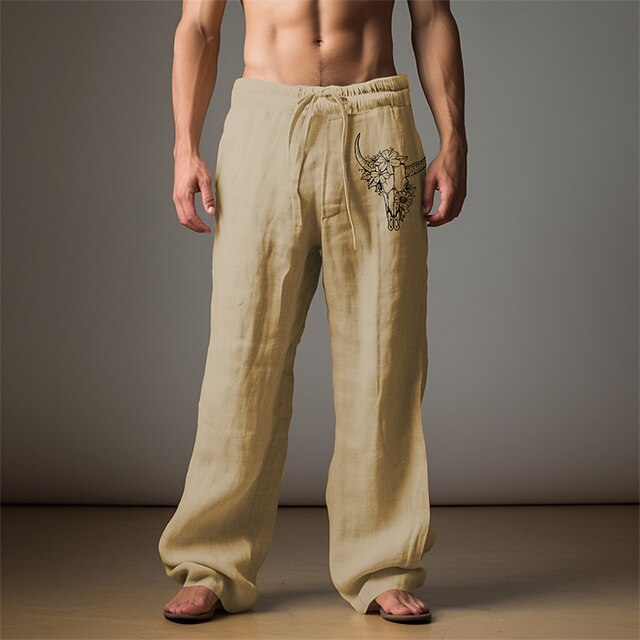 More information about Men's Graphic Cattle Pants Trousers Mid Waist Casual Vacation Daily Wear Going out Spring Fall Light Brown Blue Green