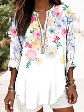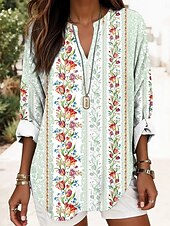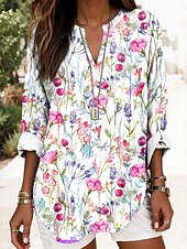 More information about Women's Blouse Tunic V Neck Long Sleeve Boho Casual Tops Ombre Floral Graphic Elegant Stylish Romantic Regular Tops Daily Print White Light Green Pink Beige