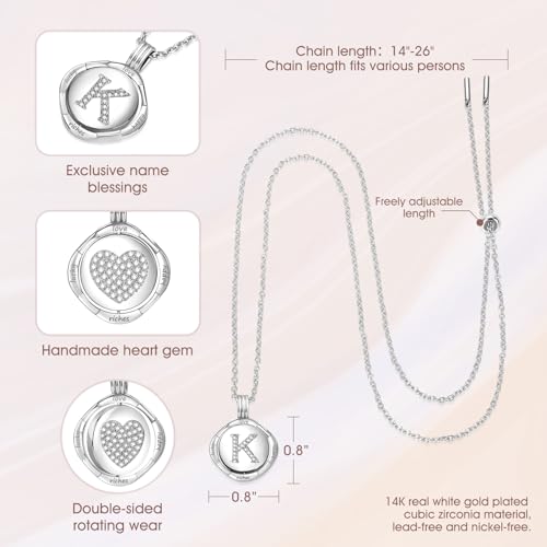• ❤ GOLD INITIAL NECKLACES FOR WOMEN: Rotating dual-side design, Front – Custom letter A-Z , Back – Heart necklace sparkling zirconia. "Your initial carved into my heart, my love spins eternally around you." This romantic surprise 14k gold initial charm necklace suitable as couple necklaces, mother daughter necklaces, graduation year keepsakes or best friend forever personalized jewelry.