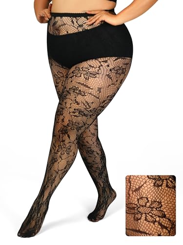 • True Plus Size! The Floral Fish net tights come in Large size and with high elastic, fitting comfortably up to 230 lbs