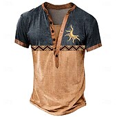 More information about Men's Tribal T Shirt Henley Shirt Tee Short Sleeve Designer Basic Classic Outdoor Casual Daily Summer Gray Navy Blue Brown Henley Henley T-Shirt