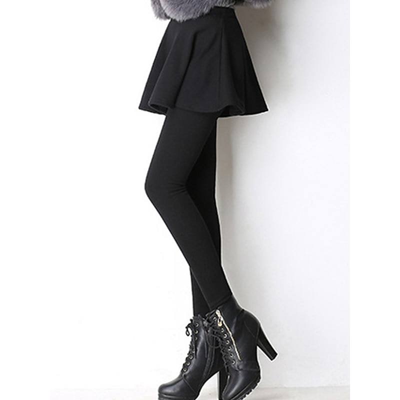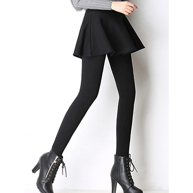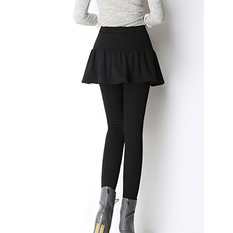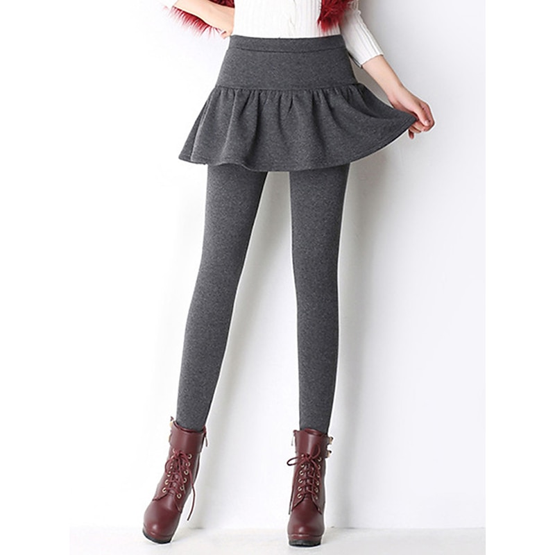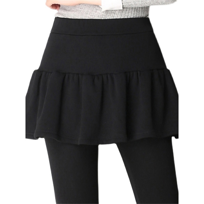 More information about Women's Skort Cozy Fleece Lined Cozy Leggings Fashion Streetwear Full Length High Waist Plain Ruffle 2 in 1 High Cut Comfort Breathability Soft Micro-elastic Vacation Street Daily Ash Black Fall