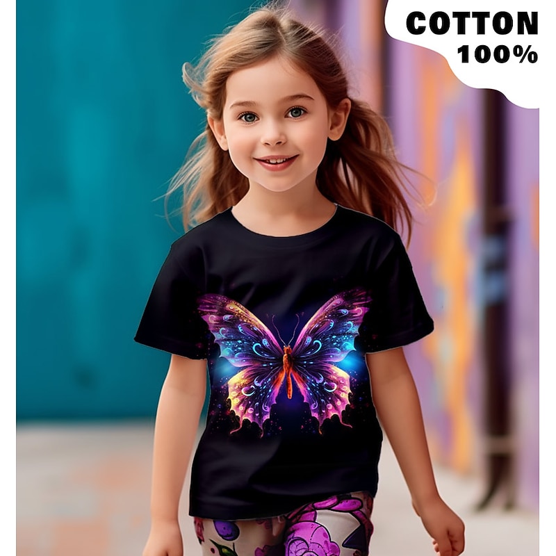 More information about Girls' 3D Graphic Butterfly T shirt Tee Short Sleeve 3D Print Summer Spring Active Fashion Cute 100% Cotton Kids 3-12 Years Outdoor Casual Daily Regular Fit