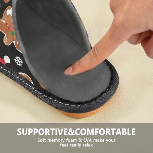HOT ! Slippers for Women Gingerbread Man Christmas Hats Pattern Soft Winter Warm Shoes Indoor Outdoor Non-Slip House Travel Slippers