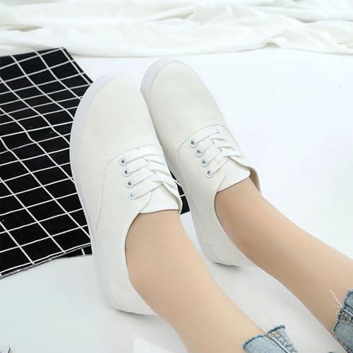 Womens White Canvas Sneakers Lightweight Lace Up Fashion Comfortable Canvas Shoes Low Top Slip On Casual Tennis Walking Shoes Women Footwear 7