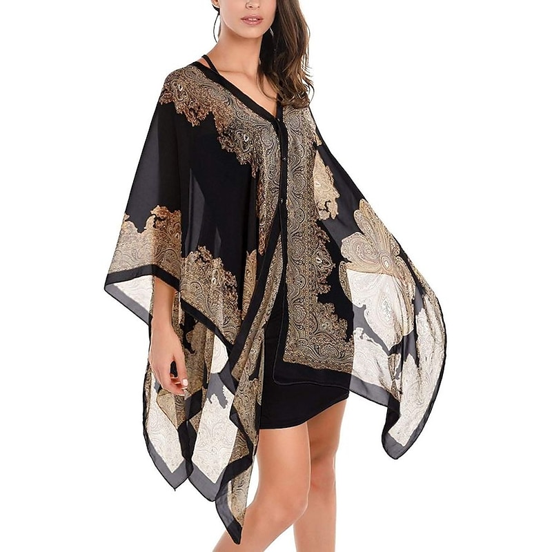 Fashion Women Scarf Shawl Poncho Printed Sunscreen Scarf Sun Protection Shawl Beach Shawl Bikini Cover Soft Comfortable 1