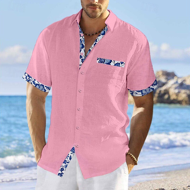 More information about Men's Shirt Linen Shirt Summer Shirt Beach Wear Button Up Shirt Floral Vacation Curise White Pink Navy Blue Blue Short Sleeve Lapel Summer Clothing Apparel