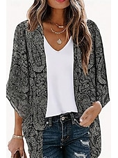 More information about Women's Boho Shirt Blouse Flower Casual 3/4 Length Sleeve Asymmetrical Regular Tops Daily Holiday Print Black Summer
