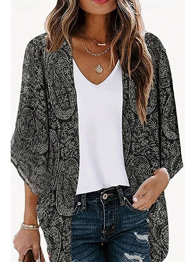 HOT ! Women's Boho Shirt Blouse Flower Casual 3/4 Length Sleeve Asymmetrical Regular Tops Daily Holiday Print Black Summer