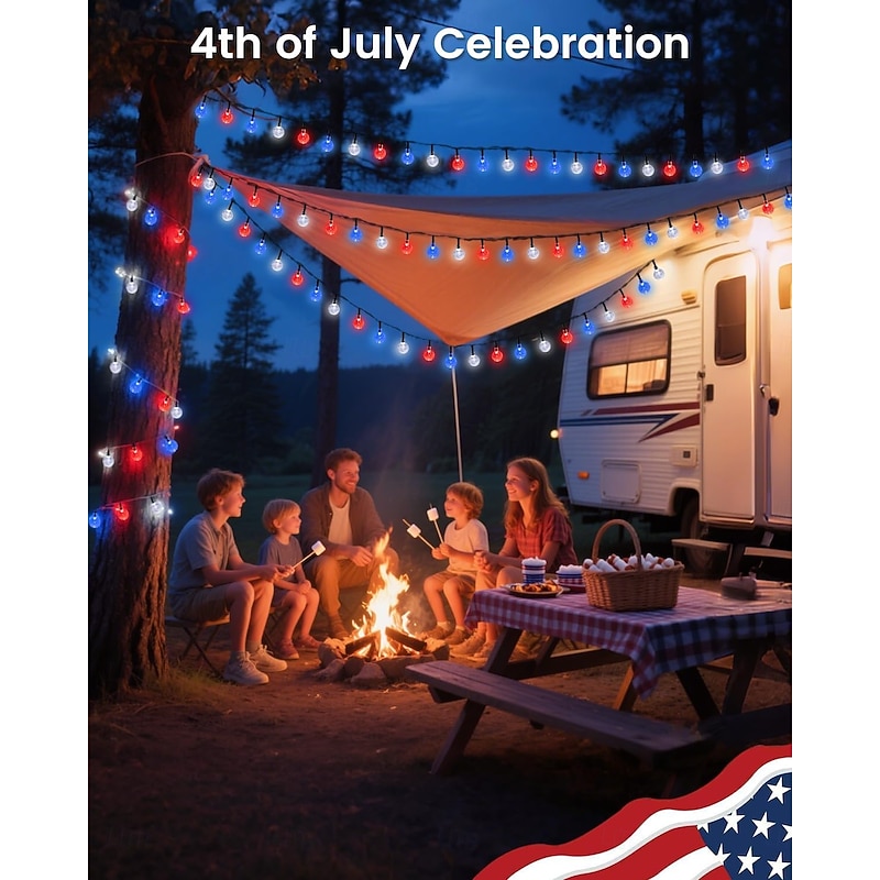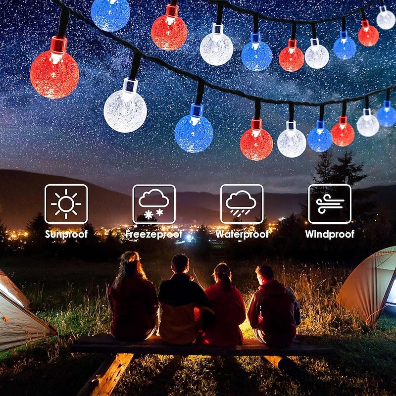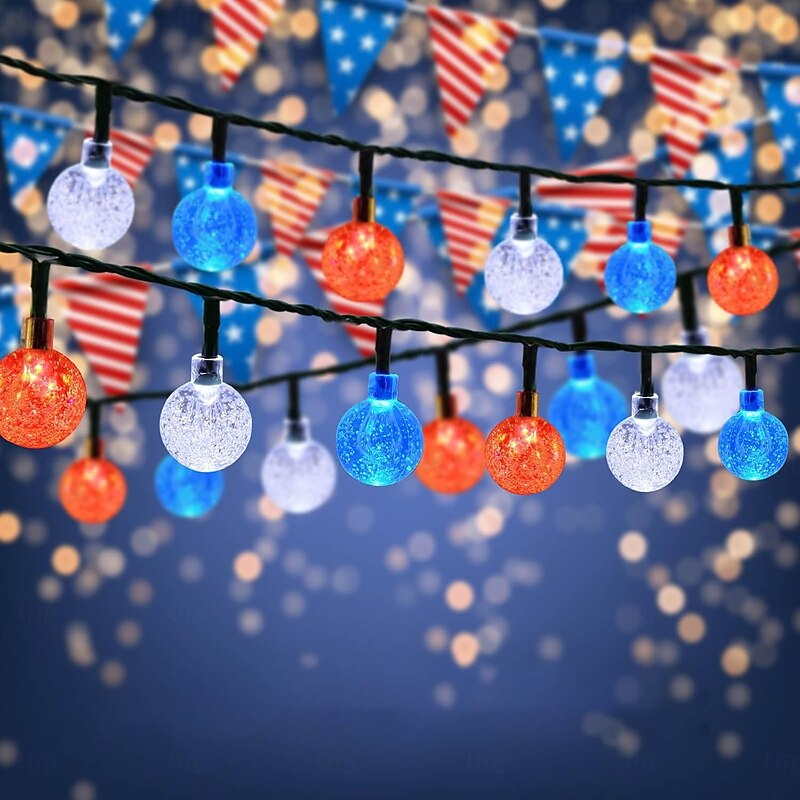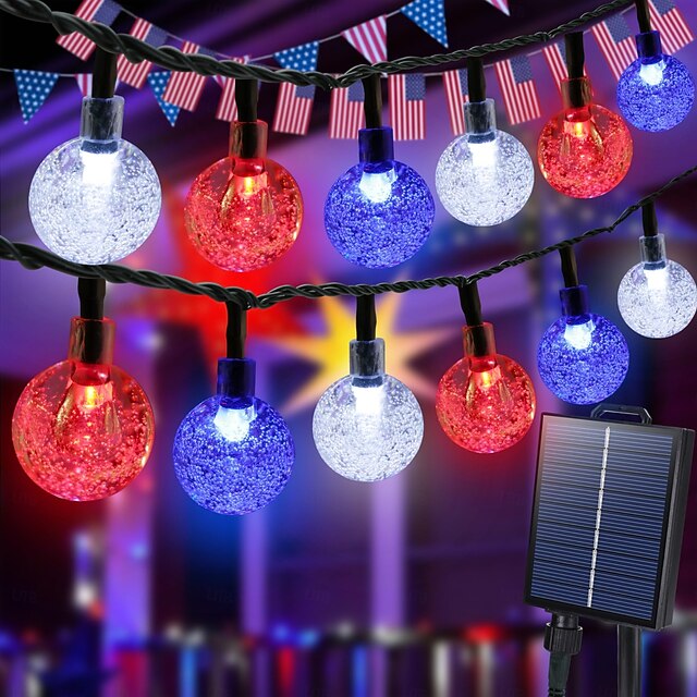 $23.99 - 1 Pc 12M-100 LED Beads Outdoor Solar Patriotic String Lights Waterproof July 4th Independence Day Red White Blue Bubble Ball Light String Courtyard Garden Fence Balcony Party Patriotic Atmosphere 2025. Shop for cheap Solar String Lights online? Buy at lightinthebox.com on sale today!
