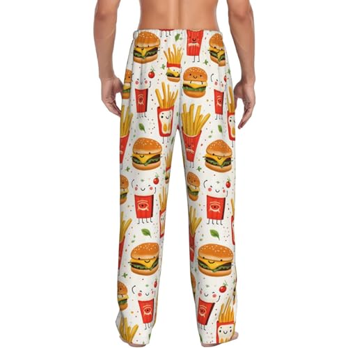 Mens Pajama Pants - Cute Burger Fries Print Soft Sleep Lounge Pants For Men, Casual Pj Bottoms With Pockets 1