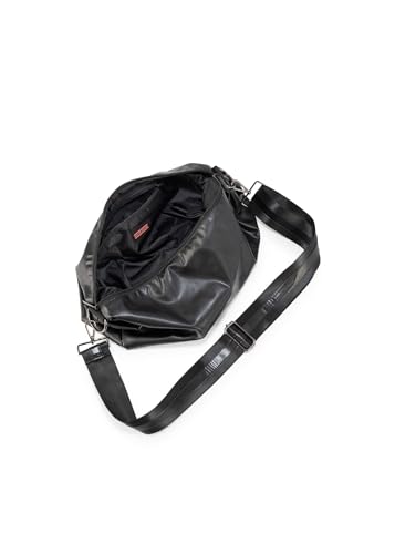 Fabric type: Faux LeatherOrigin: ImportedClosure type: ZipperLining: LeatherBlack vegan leather.Slouchy crossbody bag with zipper closure.Slouchy crossbody bag with zipper closure.Includes one tonal striped strap and one patterned strap adjustable to 55 inches.Dimentions: 17 wide x 10 high.Washable with mild soap. Hang dry. ideal for everyday use. top-grade materials and excellent craftsmanship ensure long-lasting durability.