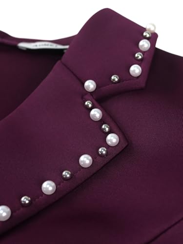 ONTINVA Women's Pearl Beaded Notch Neck Bodycon Midi Dress Puff Sleeve Elegant Formal Business Church Long Dresses 7