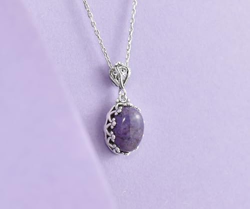 • Unique Natural Charoite Gemstone – The 10x14 mm oval Charoite gemstone showcases its distinctive violet swirls and fibrous patterns, known for its spiritual connection and ability to bring emotional healing. This rare gemstone makes the necklace an unforgettable gift for any special occasion.