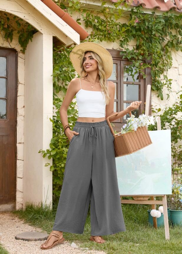 • Features: Wide-leg design, elastic high waisted with drawstring, not see-through, linen beach pants, loose fit long pants for women cover up, flowy dressy pants chic and comfy. 2 practical pockets, deep enough to keep your wallet, cell phone, keys and more. Solid color and various print pants, more choices for you